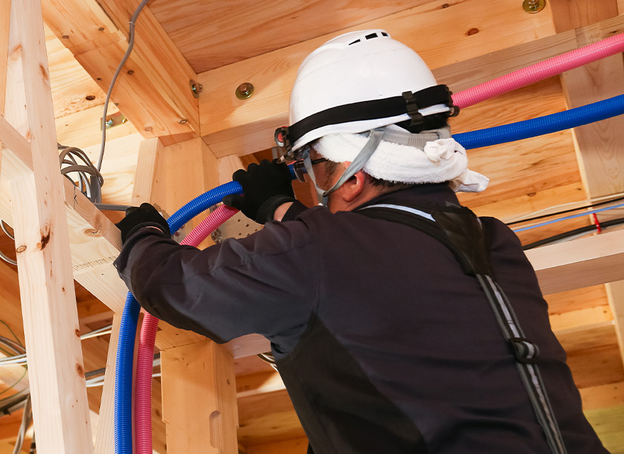人が生活や活動を行う上で欠かせない「水」を安全・快適に使えるようにする設備です。 建物内には、きれいな水を供給し、使い終わった水を下水道へ流すための配管が縦横に張り巡らされています。当社ではこのシステム全体を構築し、トイレ・洗面所・浴室などの水回り設備の設置や調整を行います。 また、温泉施設の大浴場や学校のプール、公園の噴水設備など、さまざまな用途にも対応しています。 さらに、火災時に自動的に放水する消火栓やスプリンクラーなどの防災設備も取り扱っています。
